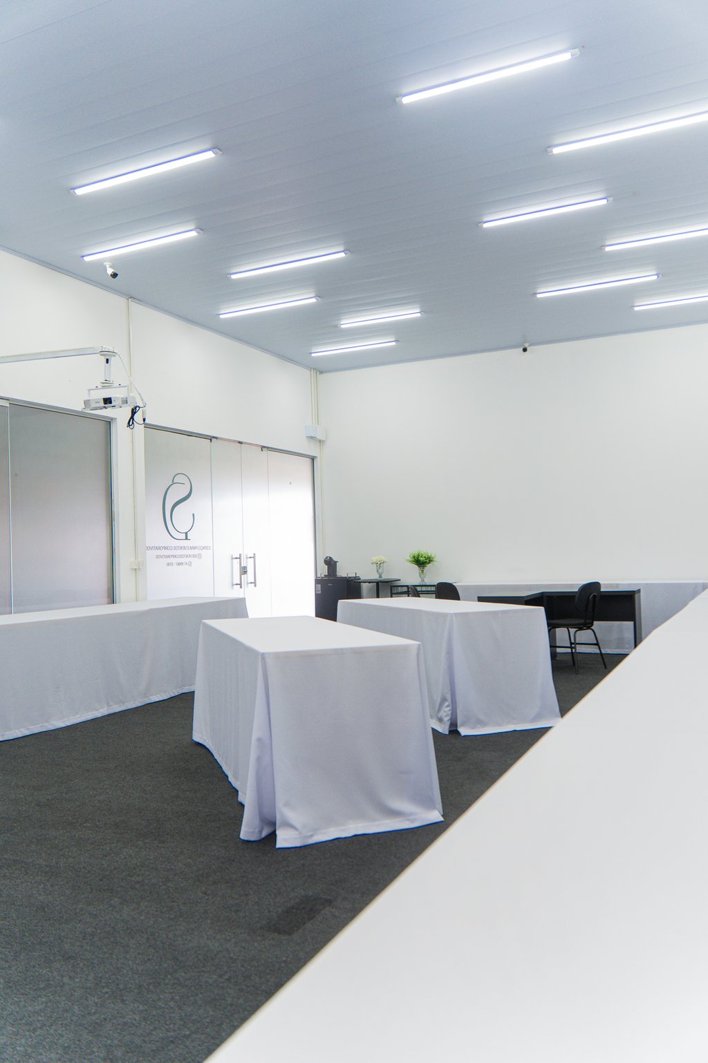 Com capacidade atual para até 30 pessoas sentadas confortavelmente, nossa sala de reunião com 100m² atende a diversos eventos corporativos.