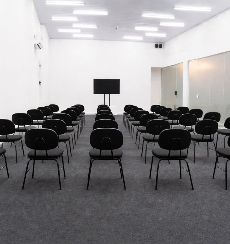 Nosso espaço para eventos é extremamente versátil, portanto seu espaço total pode ser utilizado apenas com cadeiras para acomodar os participantes, caso se faça necessário.